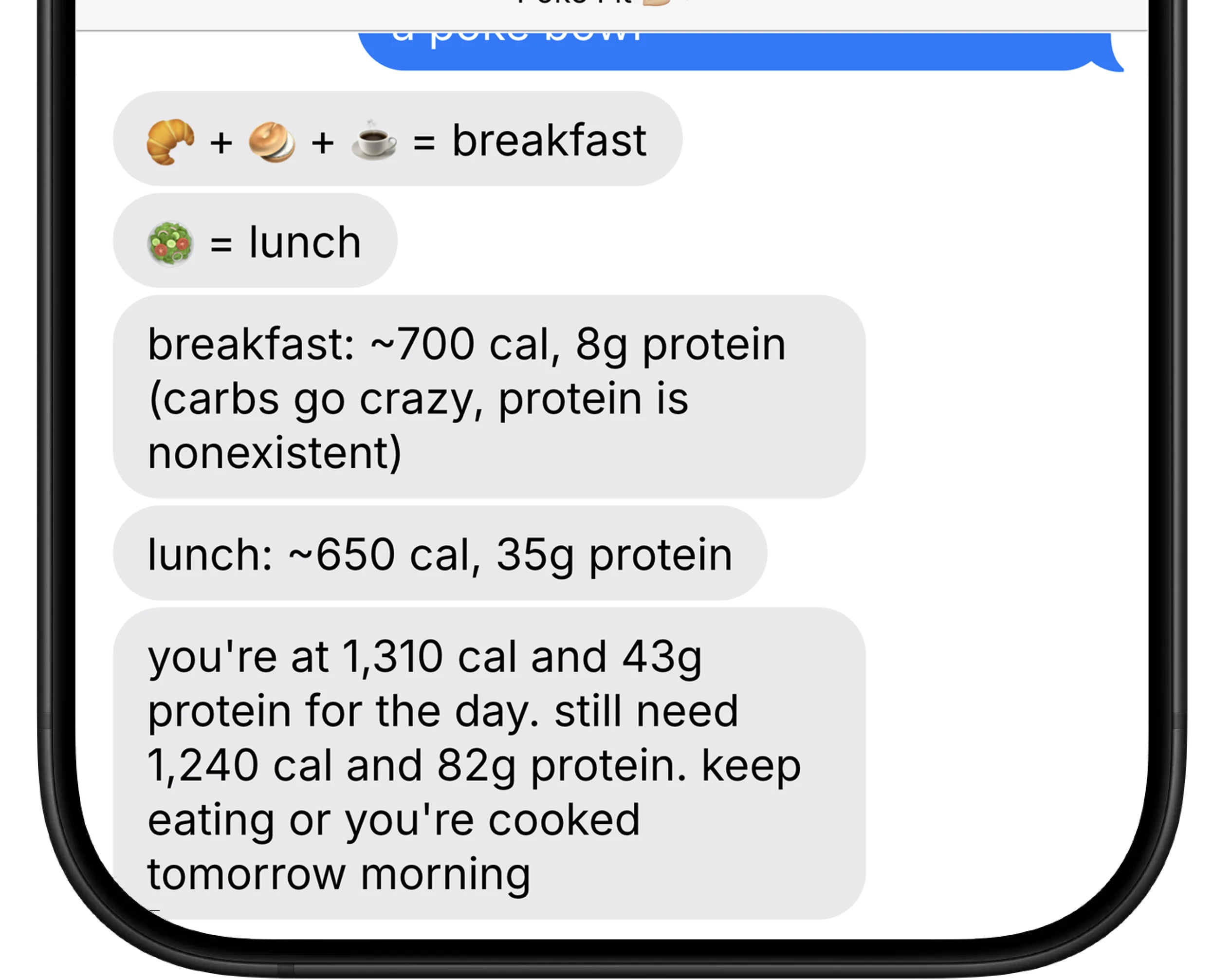 Text what you ate and Poke tracks calories (and macros) for you